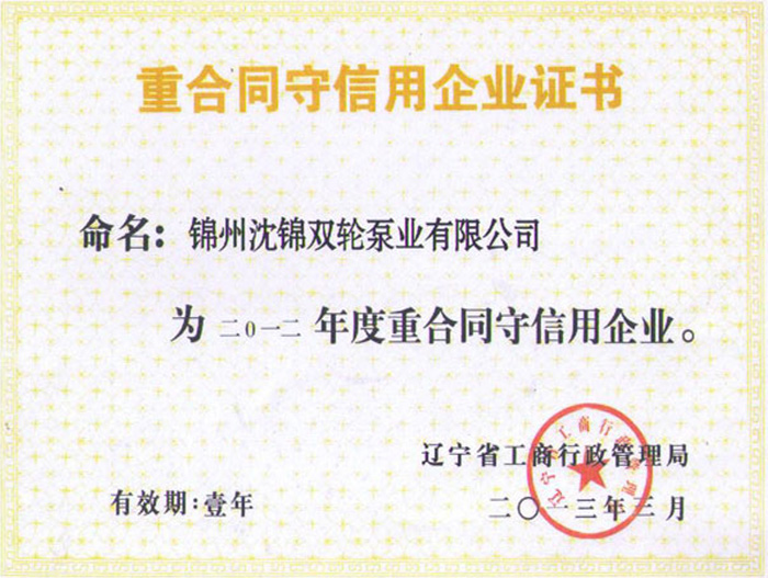 重合同守信用企業(yè)證書