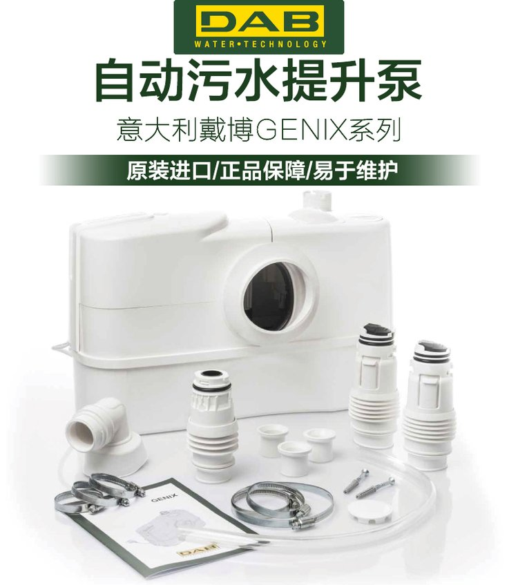 GENIX系列自動污水提升器,是一種自動收集和泵送污水的帶切刀的小型提升泵站。所有有家用衛(wèi)生污水排放需求,但沒有重力排水管或無法連接重力排水管的場合,GENIX就是解決方案